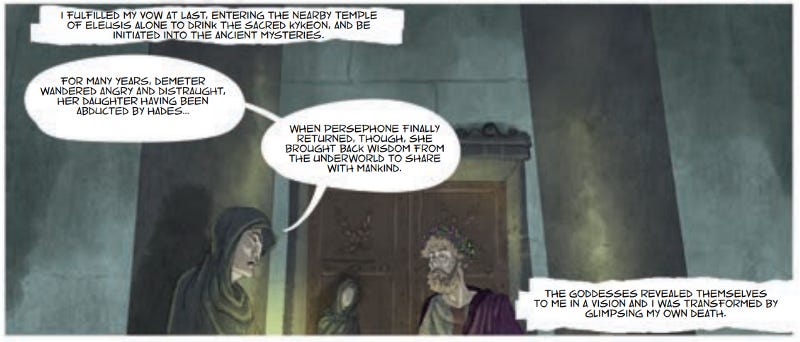 There was always an association between the Eleusinian mysteries and Stoicism as the ceremony, which lasted several days, actually began before the Stoa Poikile, the home of the Stoic school at Athens, before proceeding to nearby Eleusis.