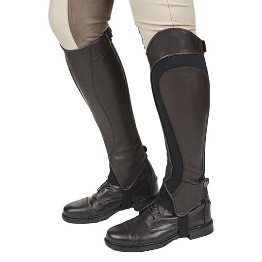 I love my TuffRider Ladies Derby Leather Half Chaps from Dover Saddlery. I’ve had compliments on them. They are soft leather with durable zippers. (I looked at other half-chap brands and some have very small zippers. I wondered about them holding up with regular riding.) They fit fine right out of the package and are comfortable when riding. The only issue I have is the zipper going up the back of the leg instead of the side. It can be hard to start the zipper from the top if you aren’t a yogini (and I am a yogini). Still, they are attractive and beautifully made. The stretch panels allow for leg contouring and holding them in place while I ride. They look especially smart with my Ariat Ladies Heritage IV Zip Paddock Boots. It’s a nice clean line on my leg.