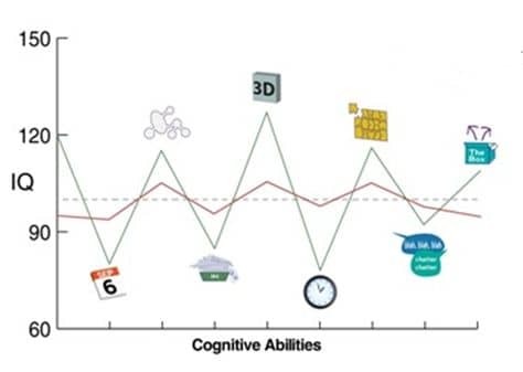 One of the common diagrams used by this movement is a “Spiky Profile” diagram. This diagram has IQ on the Y axis with various cognitive elements going down the X axis. It’s showing how ASDs are better in some things but not others.