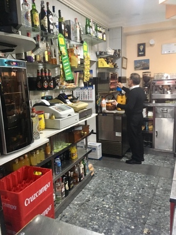 Morning in Cadiz begins with cafe' y tostada, coffee and toast. What you spread on your toast is up to you, and the variety is seemingly endless. Whether smeared with olive oil, butter and jam, or pig lard, toastada is how the day begins. My One was still sleepy, so I ventured out alone. The bar next to our Hostal had everything that I needed. There was a zinc-topped bar to belly up to, an assortment of early morning Spanish gents, and a proper barman behind the counter. Some of the regulars were already nursing shots of aguardiente with their coffee. The pungent smell of the firewater was a novel accompaniment to my brekkie. I was the only foreigner in the place. It was a fine dose of local culture with which to start the day.