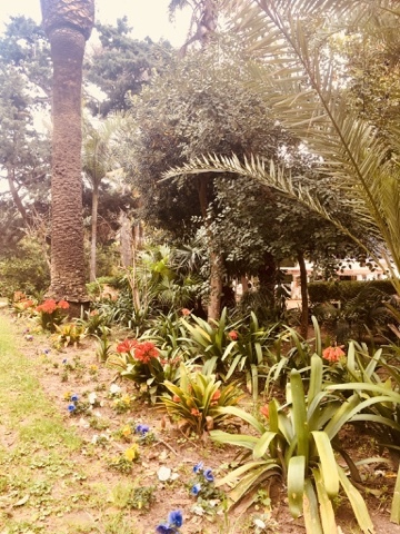There are wonderful parks along the Atlantic side of the old city, with exotic plants from Africa and the Tropics. Gravel walkways pass formal topiary gardens, strange Dragon Trees, and fat-bellied palms. Raucous parrots race about, squawking and carrying on.