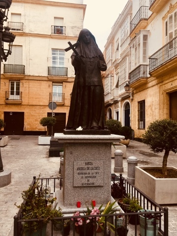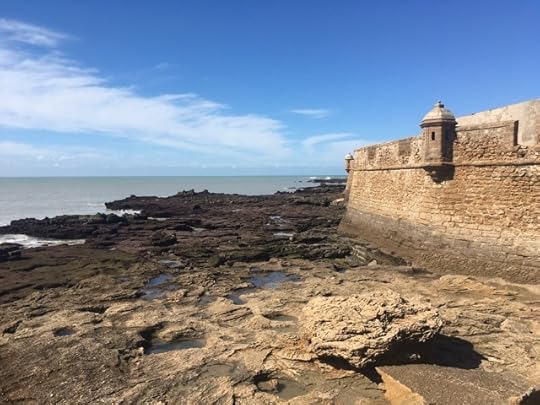 Fueled and caffeinated, it was time for walkabout. Cadiz may be one of my new favorite walking cities. Many of the narrow streets and lanes are devoid of vehicular traffic. There is the occasional scooter or car to dodge, but they are slow-moving, and the drivers are polite. Many of the cobbled lanes are pedestrian only. Wander this way to the Atlantic, that way to Castillo San Sebastián, or get lost trying to find another small plaza. Now matter where one turns, there is something else to discover. Out on the promenades, there are wide-ranging views across the breakwaters and surf. Turn away from the water and the world becomes a tangle of narrow passageways. What I would not give for a time-machine and a trip back to Cadiz before the internal combustion engine was invented. As it is, Cadiz is itself a sort of time capsule.