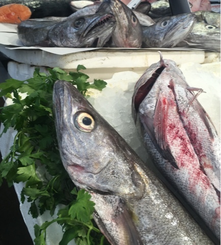 We stopped for a second coffee near the busy mercado. The good Spanish shoppers were out in droves, picking up fresh fish, fruit and veggies.