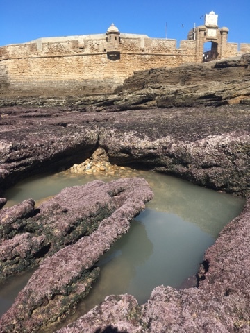 It was the perfect morning for expoloring. The sky was unbelievably blue, and the wind had mellowed to a gentle breeze. It was time to walk the causeway to Castillo San Sebastián. The surf had been too high on the previous day, but this morning the tide was out and the reefs and shoals waiting to be climbed over.