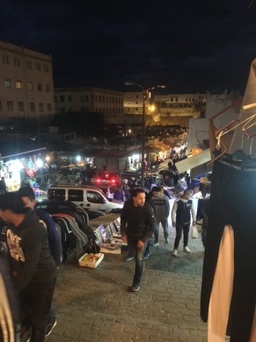 We walked three long city blocks, crossed Boulevard de Fés, and disappeared into a maze. The place was devoid of even the few tourists one sees in the Kasbah. This neighborhood was the real deal. Two quick twists and we found ourselves immersed in a local street market, a noisy shopping street crammed into a lane not twelve feet wide. The place was seething with folks out for an evening of shopping. From tables of bras and underwear to bootleg CDs, piles of dates to piles of shoes, there was very little that wasn't on offer.