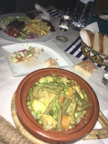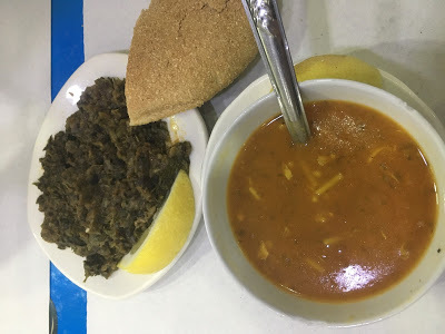 Walking is hungry work. We retired to our food street for some local fare. We started out the meal was Harira, our new favorite soup. The other dish is Zaalouk, an eggplant dish. I love foods that start with a 'Z.'