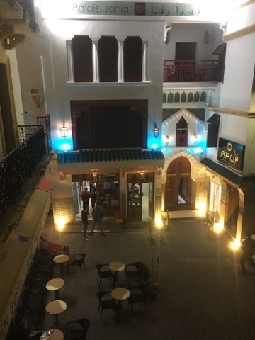 The main street on which our hotel was located.Finally, after wandering into the Medina, getting lost, and paying a shill five dirham, we were at the hotel. Another lesson learned. Even with a screen shot of Google Maps, a normally good sense of direction, and an over-supply of good luck, things can go very, very wrong. If your Baby says "I think it's the other way..." at least be open to the possibility.