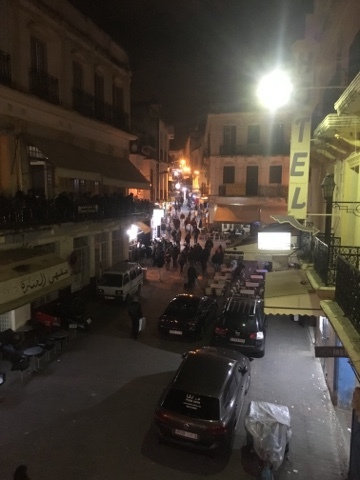 When night falls, Tangier comes alive. Don't misunderstand. While the city vibrates like a live wire during the daytime, night brings everyone into the streets. Maybe the cramped apartments become too claustrophobic, or maybe the old Moroccan matriarchs just want a bit of peace. Whatever the reason, the nightime streets of Tangier become positively electric. It is time to walk, to find a cafe' table, to sip tea, eat, watch the night-world unfold.