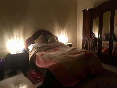An old room in the old cityThe days begin early in Tétouan, Morocco. The building may be built of stone, but the call to prayer permeates everything. There are a great many mosques in and around the Medina, the old city. There are mosques scattered through all of the villages that dot the valley, stretching away to the Mediterranean coast. The faithful must pray before and after sunrise. At 5:30 AM, the Call to Prayer begins to echo from the loudspeakers, first from this mosque, then from the next. It rises to a crescendo of chanting, then fades away. You, good traveler, are now awake, and very aware that you are not in Kansas anymore.