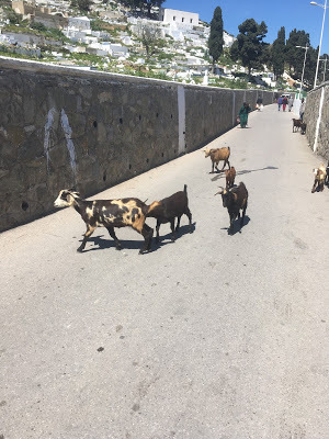 The dead stayed dead as we hiked amongst them, small narrow graves cascading down the hill. But there was life in the cemetery as well. Goatherds watched their flocks, nimble goats grazing amongst the white stones. There were goats doing acrobatics, goats on the hoods of parked cars, none of them the least bit concerned with what lay under their hooves.