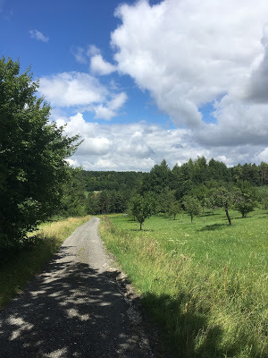 I did arrive in Ebermannstadt. I did doff my travel clothes and don hiking gear. And, on a warm summer evening, I did hike through a picture perfect countryside of fields and small villages to my destination. But that is the stuff of the nest installment.