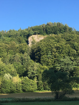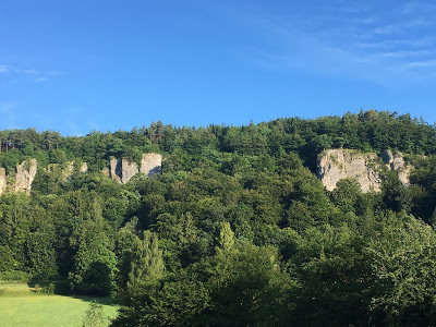 Franconia is a region of knobby hills, woods, fields and valleys. The locals fall prey to the same vanity as the Viennese, naming hills Alps. While not possessing the craggy splendor of the genuine article, the Franconian hills are laced with hiking and biking trails that offer fine wandering. There is no need of motorized transport to find a hiking route. One simply leaves the hotel, climbs the steep lane above the hotel, and in five minutes is ascending the rocky outcropping to the upper reaches of the valley.