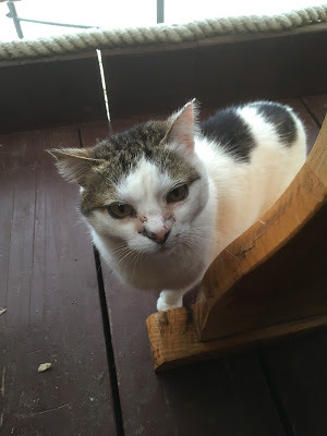 The Local Seafood Safety InspectorA sudden rain squall swept the town, but we were snug and dry under the awning of our outdoor restaurant. We watched the rain pelt the flagstones while fending off the advances of the local cats. As quickly as it had come, the rain was gone. We poked around the centuries-old monastery, which glowers over the town like the fortress that it is. The skies cleared, the moon shown, and the wet flagstones glowed.