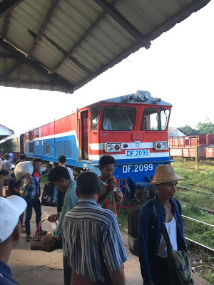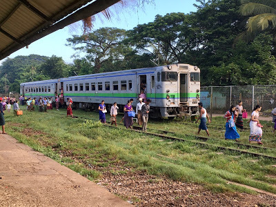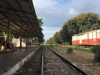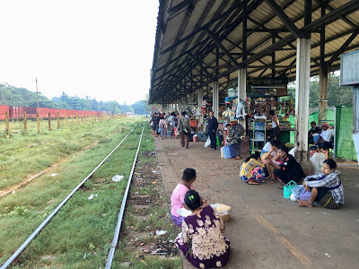 If you look at the picture above, you will see grass-grown tracks leading north. These train tracks are not some forgotten siding leading to nowhere. This is the main line, the Yangon-Mandalay line. Take note, traveler. The grass grows more quickly than the train rolls.