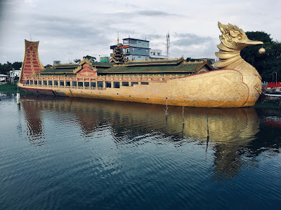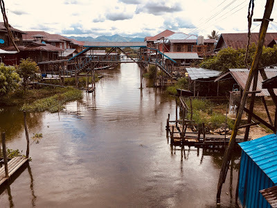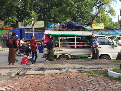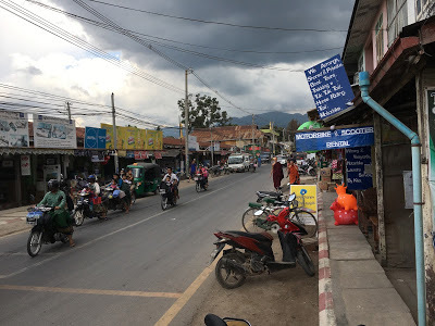 So, the situation is this: Our reservation be damned, the locals are in, we are out, and the town is booked solid. Step one: Find a café with WiFi. Step two: Get my still-sick Sweetie a nice, cool drink. Step three: Try to get a last minute deal online. And... the town really is slammed, unless a body wants to fork over $100+ per night. This is where it gets fun. I set out on foot, leaving My Heart to guard the backpacks. It's hot, sultry, and I'm sweating bullets. I walk a long ways, about a four kilometer loop, and I have bupkis to show for it. The Travel Gods must have gotten their jollies, because at the last place, they finally relent. I find a modest little guesthouse devoted to Myanmar folks, a friendly, sympathetic host, and one last room.