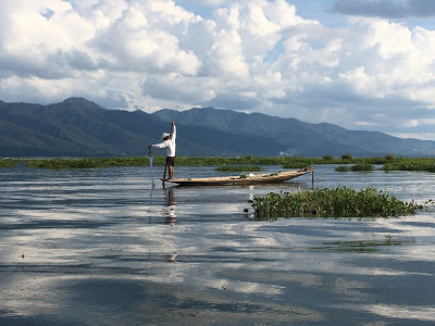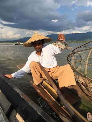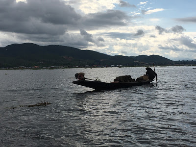 There was yet one more tourist obligation to fulfill. We had to stop for a photo-op with one of the local fishermen. This is the photo that everyone wants, the image emblazoned across the cover of the Lonely Planet guidebook. Here is another irony. The "Fishermen" who work closest to the route of the tour boats are more engaged in being icons than they are in fishing. To be sure, there are fishing boats scattered across the lake, and the majority of those are meant to catch fish and eels from shallow waters. The fishing boats along the water route to town, however, are after a different catch. These folks know that the tourists want that important photograph, and they are happy to play the role for a small fee.