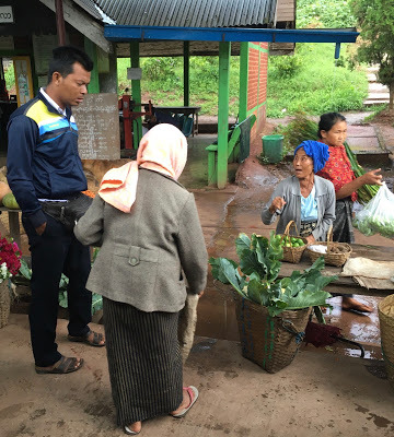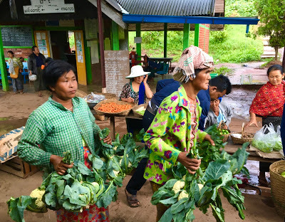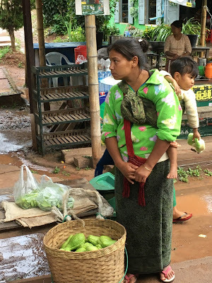 We reached the high country around Kalaw, a former British colonial outpost at an elevation of 5,000 feet. These high valleys were the site of tea plantations. It was odd to see the local folks bundled up in parkas and hoodies, trying to fend off the freezing temperatures of seventy degrees Fahrenheit. We made a quick stop, and couple of young Farrang women crammed into the van.