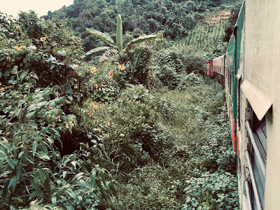 Slowly, that is the key word. My Heart and I relax as we watch the countryside roll past. Far to the east and west, green hills roll up into jungled mountains, but the valley to the north runs on forever. The train chugs along, stopping in small villages and larger towns. The rhythm of the journey blends together. Rice paddies and fields stretch out on both sides of the tracks. Snowy egrets stand like statues, waiting for a careless frog or fish. Everywhere the landscape glistens with mirrors of standing water, punctuated by emerald green. The vendors climb aboard, hawk their wares against the lurching of the train cars. Time ceases to move; it simply is.