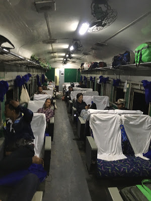 Today we are traveling in the Upper Class wagon. The leg from Bago to Thazi will take at least ten hours to cover a distance of 460 kilometers, or 276 miles. The math is simple: we will not be traveling quickly.