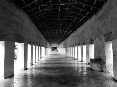 The temples are blocks, and the inner passages conform to the outer shape. Thus we found ourselves in cool, shadowed passageways, with stone arches high above us in the darkness. Light flows in through open arches from the outside world. Other things flow in as well. Bats often make their homes in the nooks and crannies of the stone ceilings. One can hear their tiny squeaks while exploring the labyrinthine corridors.
