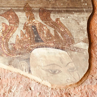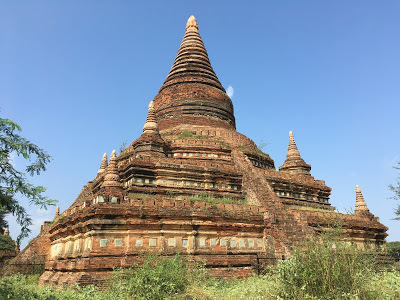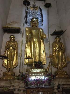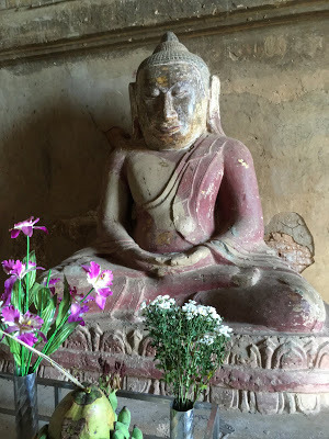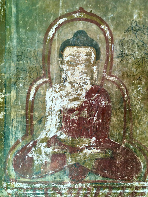 Old Bagan is a maze of temples, pagodas, and Buddha images scattered across a few square kilometers, all enclosed within the ruins of the old city walls. Outside the tumbled walls, the Bagan Archeological Zone stretches out into the distance. Today, our walkabout was centered on the area within the walls. The walkabout became something of a mantra: Temple -- Shoes Off -- Buddha Statue -- Dirty Feet -- Shoes On -- Walk Down Jungle Path -- Temple.