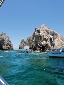 La ruta terminó en Cabo San Lucas. El sitio de más fiesta en toda la Baja Sur. Hace unos años la mayoría de la gente que se veía caminar por la Marina y su zona de discos eran gringos pensionados. Se ve que la promoción turística va en aumento pues esta ocasión paseaban un montón de jóvenes. No te dejes engañar: el tour en lancha para ver las formaciones rocosas y bañarte en la playa del amor, no te debe costar más de trescientos pesos si eres turista nacional. Así que acércate a los locales y compara los precios. Se pasa muy buen rato dejando volar la imaginación viendo las formaciones rocosas. Verás los lobos marinos muy cerca de las embarcaciones; y si tienes suerte hasta una ballena.