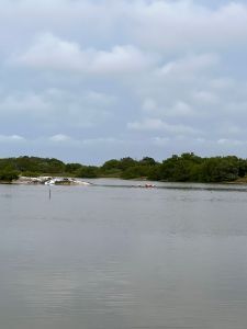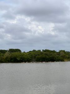 De Mérida a Celestun hay una distancia de 83 kilómetros. En coche se hace una hora exacta. La carretera se encuentra muy bien conservada. El pueblo de Celestun no está explotado por la idea d progreso y la etiqueta de “pueblo mágico” que muchas veces daña la esencia del lugar y termina por volverse una fuente de ingresos económicos que sólo gozan algunos cuantos. De inmediato al bajar del coche un hombre oriundo del lugar se nos acercó para ofrecernos un tour de dos horas en lancha. Nos cobró mil quinientos pesos por los cuatro y una perrita. El mar estaba tranquilo y de un verde color jade que se parece a la esperanza y el ensueño.