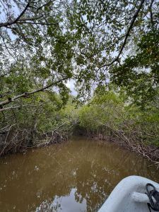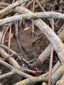 Continuamos hasta un estrecho pantanoso del manglar que formaba un río que por un momento te hacía creer que te encontrabas en el Amazonas. Entre las ramas y raíces de la fauna pantanosa vimos cangrejos y nidos enormes de termitas.