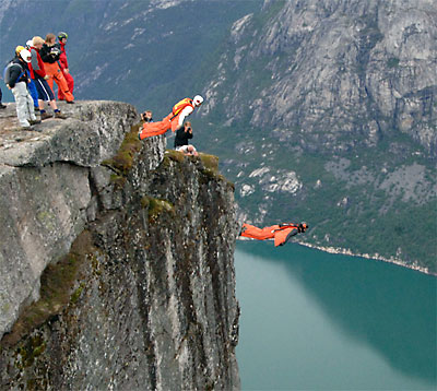 , an interview with a fellow they nicknamed the Bird-Man. He jumps off mountains with flimsy looking, parachute-type wings, skims across the hillside at 200km per hour, and then lands in the valley thousands of metres below. As if that wasn’t dangerous enough, he, and his other crazy mate, place helium balloons a metre above the edge of cliffs, then aim and fly into them for that little extra thrill.