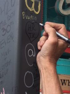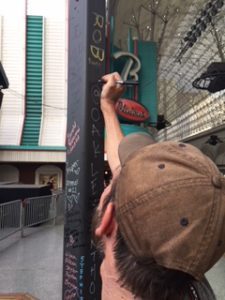 We were given markers to write on the wall at this stop. Tom was very sweet.