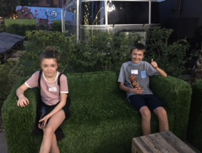 The last stop on the food tour was at a place called Fiddlestix where we had an Irish Breakfast milkshake (there was even bacon on top!). In the Gold Spike, they have many LARGE games. You can play giant chess, corn hole, or even beer pong. Shaun told us that they filmed a season of MTV’s The Real World there, so maybe this was their back yard. The kids and I played corn hole and drank our milkshakes on the lawn furniture.