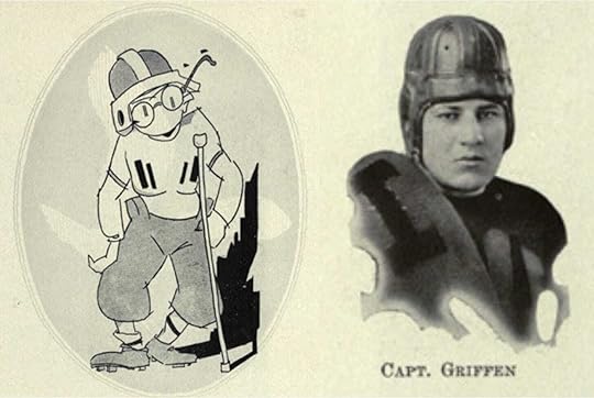 Iowa’s Herky mascot appears to have distinct helmet coloring, while their 1925 captain does not. (1927 Iowa yearbook)Watch or listen to the podcast here and/or read the original Tidbit.