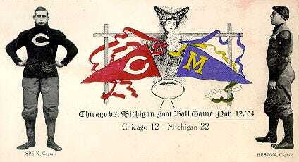 1904 Chicago-Michigan Postcard (Bentley Library, University of Michigan)In April 2023, I broke down the film of the 1903 Princeton @ Yale game and intended to do much the same with the 1904 Chicago @ Michigan game. However, the 1904 film shows bits and pieces of the game, making it difficult to tell who is who or when the action occurs in the game. Still, I'll tell the game's story based on newspaper reports and then point out moments of interest in the game film. (The Library of Congress labels...