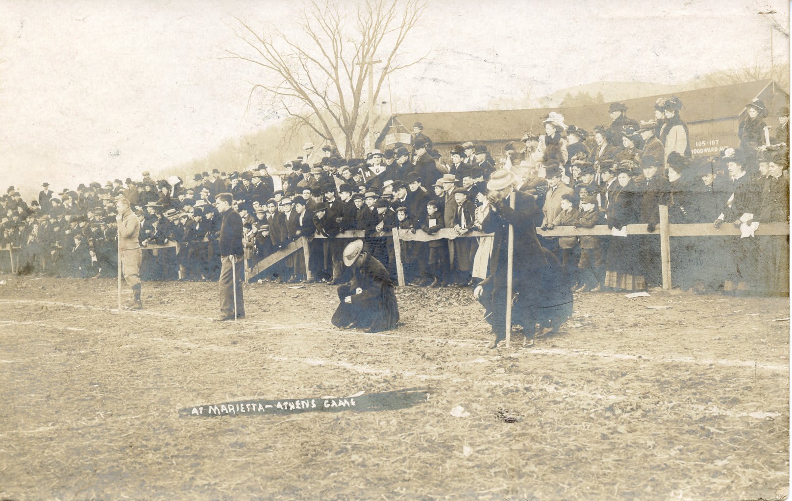 A 10-yard chain gang at Marietta in 1908. (RPPC, Personal collection)When I started publishing Football Archaeology, most articles were only a few paragraphs long. Over time, they grew longer, and eventually, I stopped publishing daily Tidbits. Recent research regarding the Crescent Athletic Club of Brooklyn led me to take another look at an early Tidbit concerning Crescent AC’s role in the invention or use of football chains by the officiating crew.