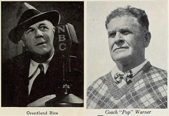 Grantland Rice spent an afternoon at Pop Warner's Palo Alto home in 1950, ten years after Warner ended his 45-year coaching career. Rice had first seen a Warner-coached team play as a 16-year-old in 1896 when Warner's Georgia Bulldogs visited Vanderbilt. The two had much to talk about as Warner recalled the origins of the Single and Double Wing, his skepticism about the Modern T as a passing offense, and his comparison of Jim Thorpe and Ernie Nevers.
