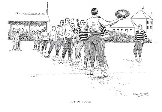 While the image is from an 1896 book on rugby, it illustrates the fair or lineout used under the IFA rules of 1876. (Robinson, B. Fletcher, Rugby Football, London: A. D. Innes, 1896.)Rule 32 listed the five methods of bringing the ball back onto the field of play after it went into touch. The third method allowed the team that possessed the bal...