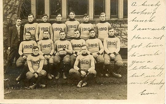 The freshmen team at an unidentified Pennsylvania college defeated the sophomore team 10-0. (RPPC)It was not until the late 1920s that players wore numbers on the front of the jersey to distinguish themselves. (Players first wore numbers on the back of their jerseys in 1905, but they were few and far between until ...