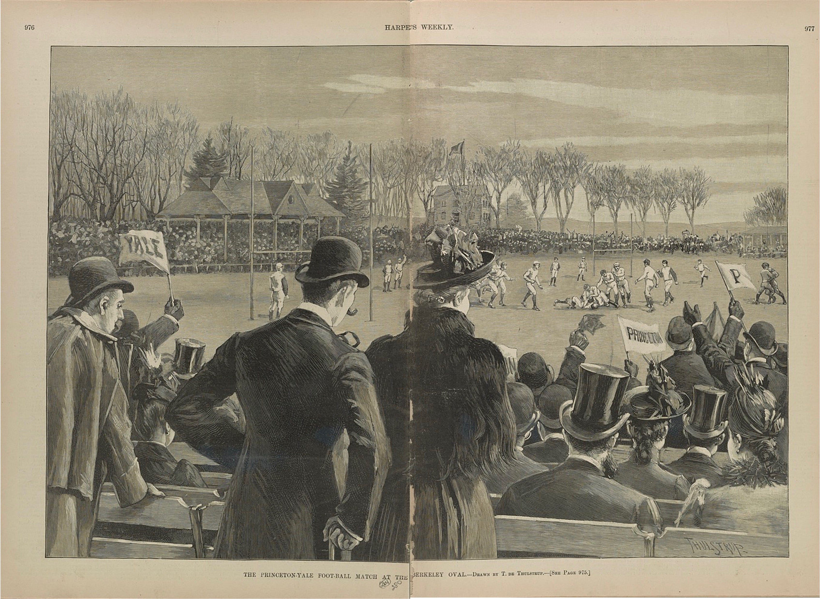 T. de Thulstrup., ‘Princeton-Yale foot-ball match at the Berkeley Oval,’ Harper's Weekly, December 7, 1889. (Library of Congress)The Intercollegiate Football Association games on Thanksgiving Day in New York City involved the top two teams from the previous year, which often meant Yale and Princeton since they were the best programs of the era. The 1889 Yale-Princeton game attracted 30,000 fans to Berkeley Oval, with its muddy playing field and grandstand entryways after a wet autumn. They were ...