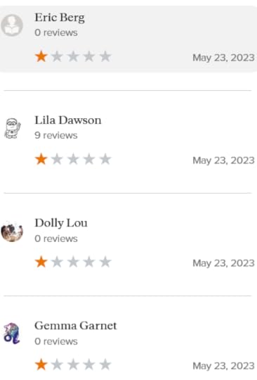 And if you need further proof, below is a list of people that left TODAY a 1-star review under a novel I unpublished 2 YEARS AGO, and therefore there is no chance they got their hands on a copy.