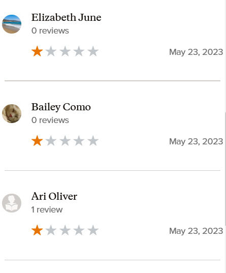 If you notice, most of these accounts have zero to one review, which means they did not exist before being created to “review” my book.