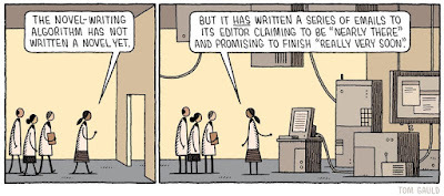 A joke about progress on Two Moons.On occasion I find myself checking my books rating on Amazon and Goodreads, and find another review. In this case I found two reviews, one totally by accident, but both of which pondered why I wrote so much or didn't write more about certain elements of story.