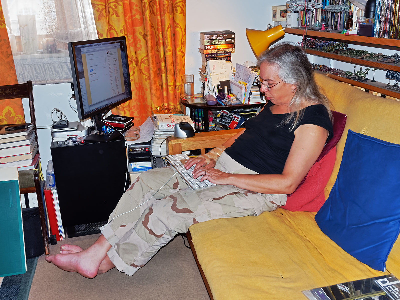 Me relaxing.Well, by skin of my teeth I managed to get the first draft out to my play-test/reader group on Christmas Eve. Of course that night I dreamed of a couple of things that I missed. Yeah, I have oddly specific dreams at times.