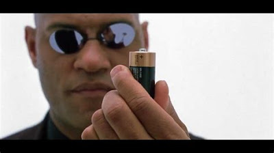 The joke is that social media marketing algorithms exploit human behaviours to turn us into 'batteries' to power businesses is a tad ironic. Here's a link to a book extract on Amazon I read: