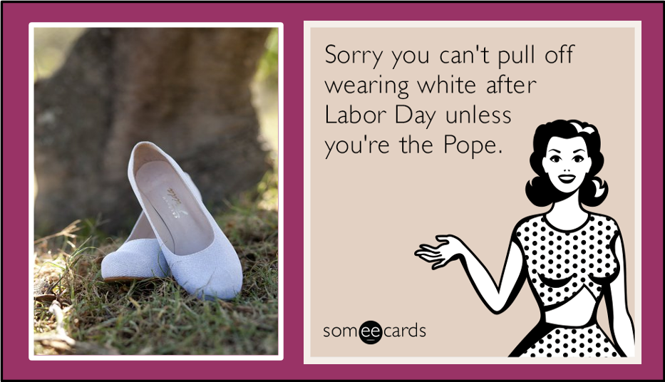 I was at a barbecue last night and we were talking about the no-white after Labor Day rule. I remember this being such a big deal when I was younger and having to say goodbye to my white shoes at the end of each summer. Is this still a big deal? Do you wear white shoes or any white clothing after summer is over?