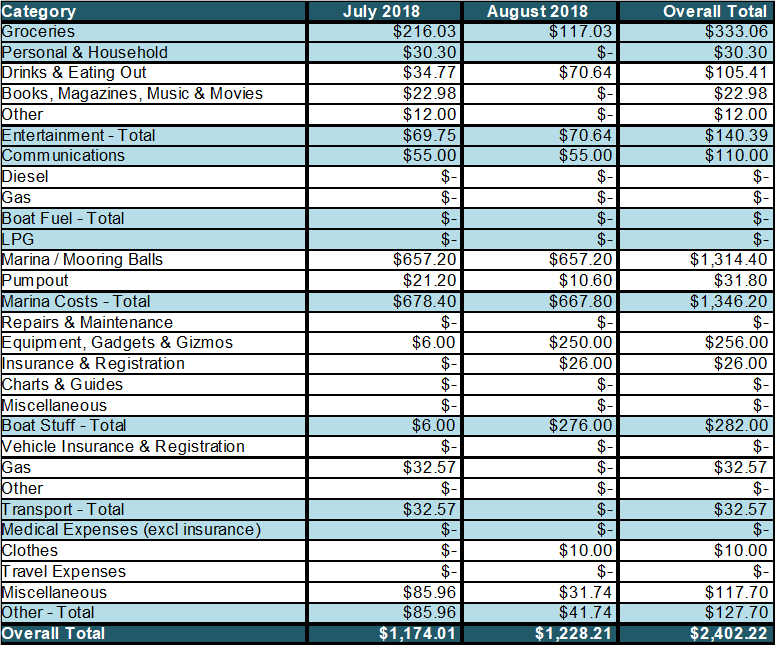 Cost Of Cruising & Living Aboard A Sailboat | July & August 2018