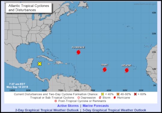 Three hurricanes in the Atlantic - Florence, Isaac, and Helene, plus something else brewing in the Caribbean which could impact Texas and Louisiana. It's pretty awful to see what's headed toward the Caribbean islands and the States right now. Especially when we just had the one year anniversary of Hurricane Irma.