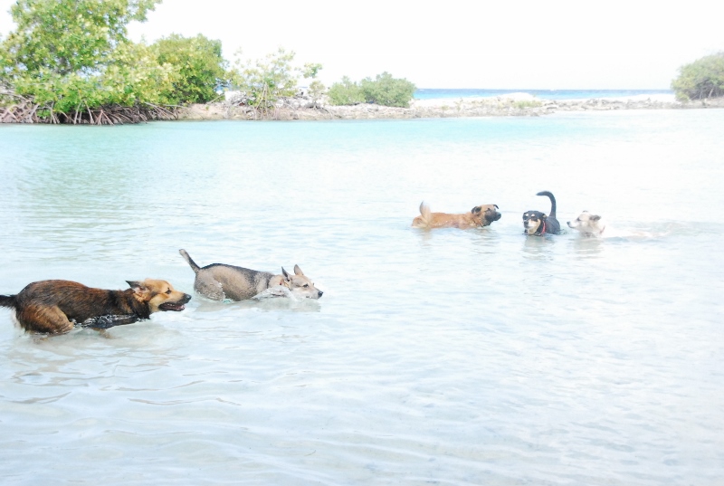 When Panchita, my first rescue here in Curaçao, came to live with us, I naturally assumed she would love water. This is an island—a rather small one, as far as islands go; no matter where you are in Curaçao you’re never more than five or six kilometers from the coast. And Panchita was a mutt of mutts, a dog who clearly came from a long line of mixed breeds, what locals here call ‘Westpointers’, or ‘Selikor terriers’. A dog of this lineage had to have the love of water woven tight into her chromosomes, right?