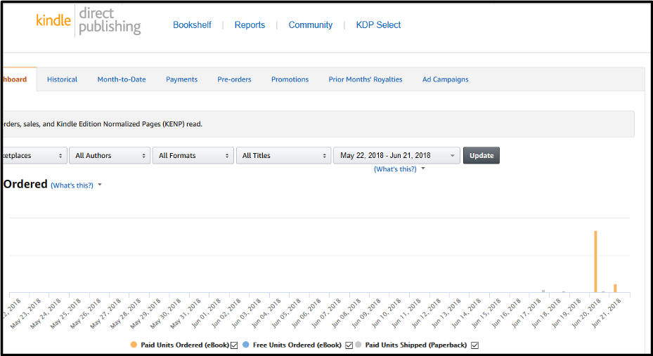 Then it was time to check the sales reporting. So exciting to see those pre-orders turn into actual live sales. Someone even bought the paperback version. I didn't really think those would sell, so that was a nice surprise. {By the way, for those of you who were interested in my Amazon exclusive vs. going wide debate, 10% of my pre-order sales came from Kobo, Barnes & Noble, and Apple iBooks.}