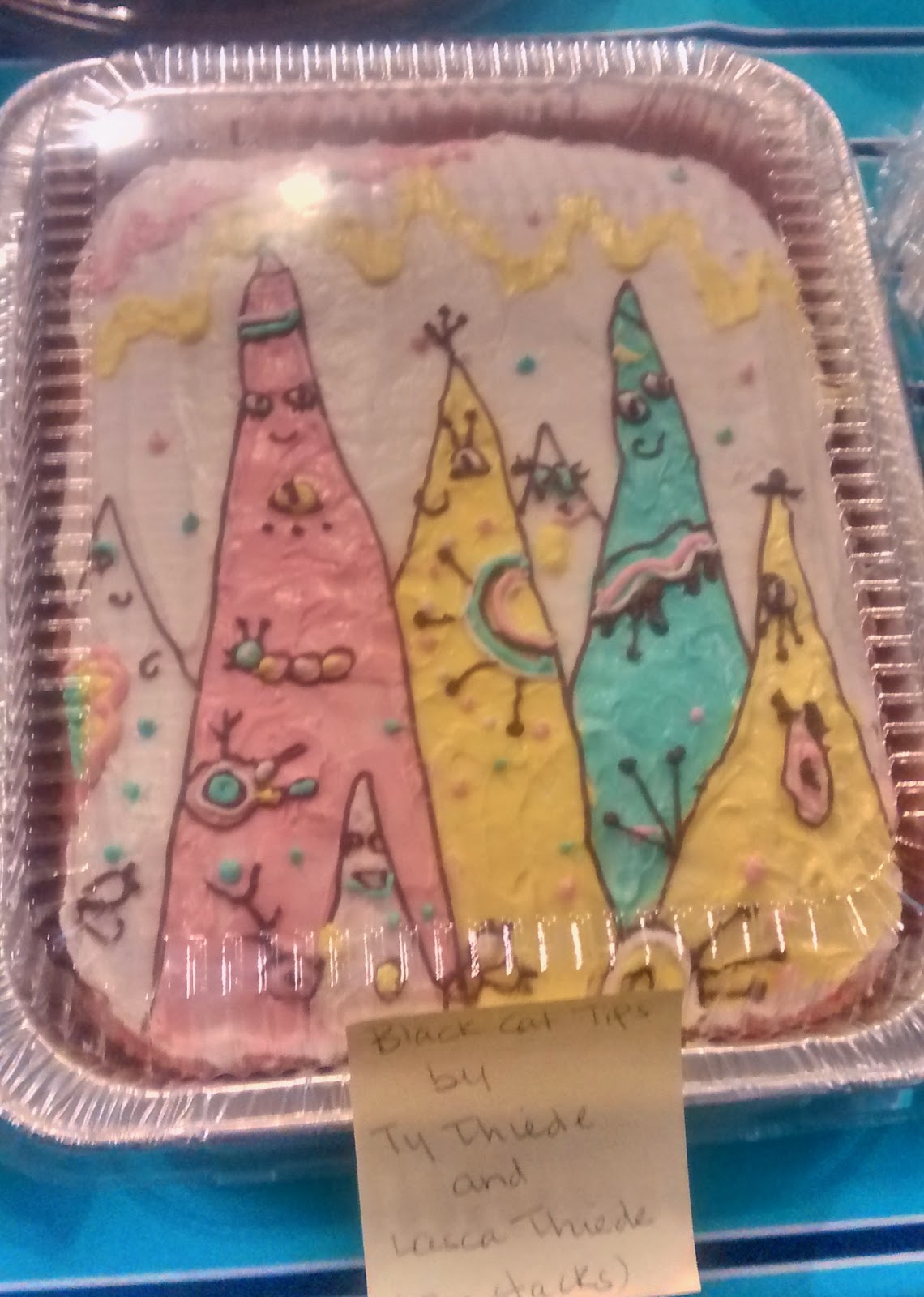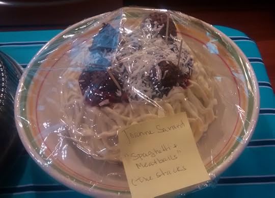 3 - There were all sorts of great looking cakes - including a creative one that looked like a plate of spaghetti and meatballs - but I had eyes for only one of them, the chocolate cake with chocolate frosting. Yum.