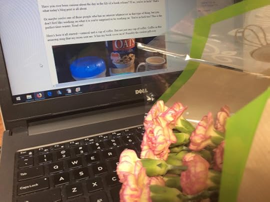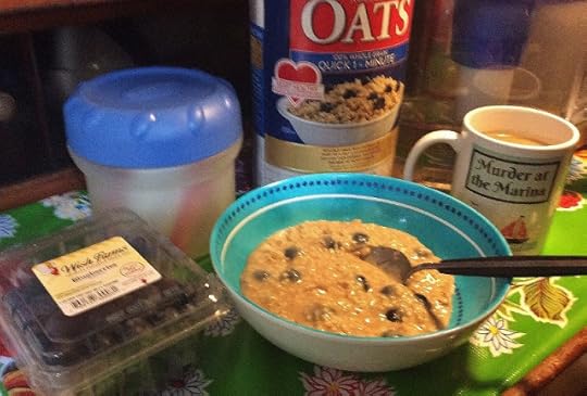Here's how it all started—oatmeal and a cup of coffee. But not just any cup of coffee. Coffee in this amazing mug that my mom sent me. It has my book cover on it! Possibly the coolest gift ever.